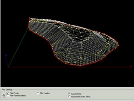 Blast design software that interfaces with laser profiling scanners and enables customers to take advantage of dense data point clouds generated. The software will allow users to design and layout future or existing boreholes.